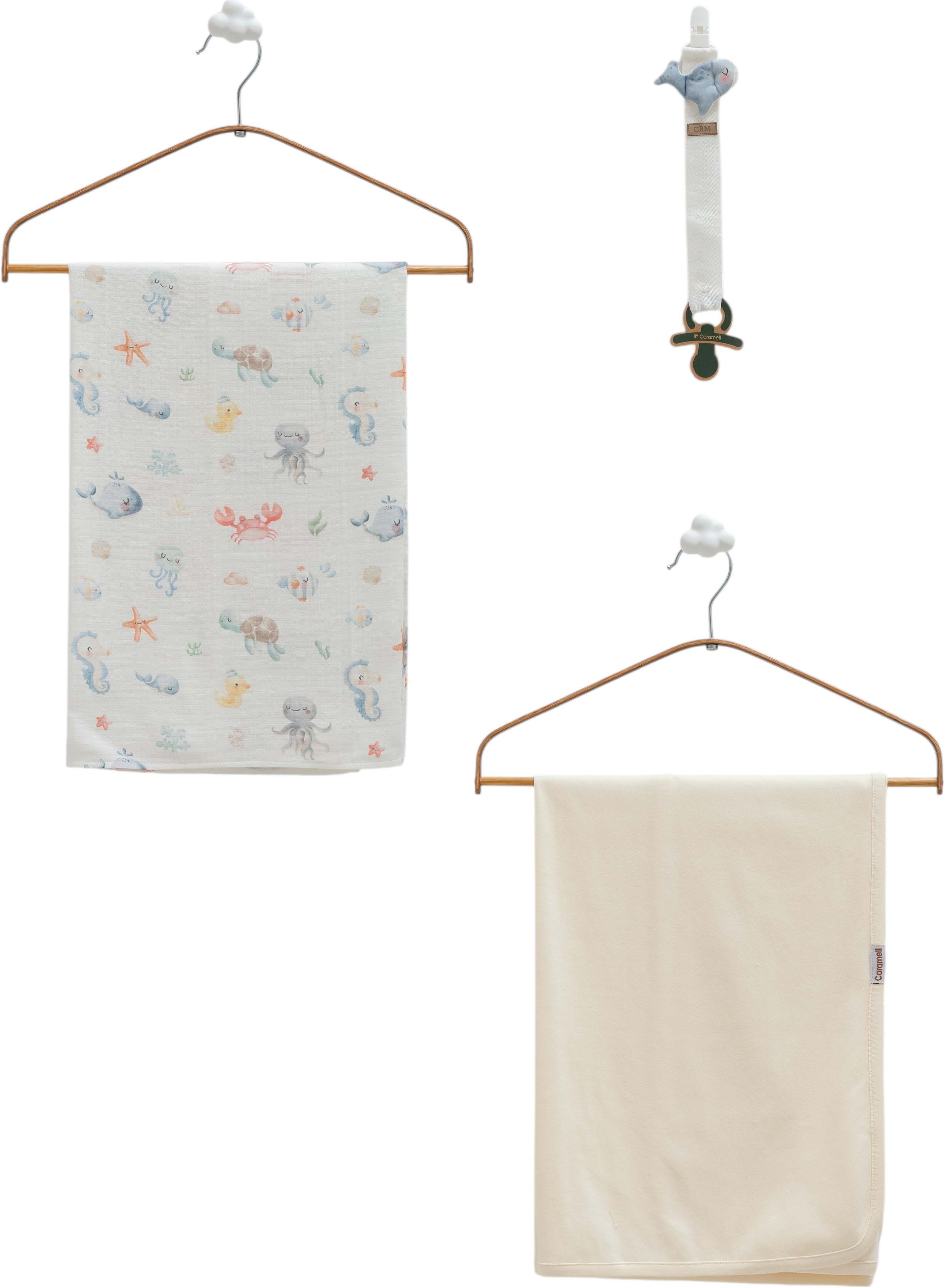 Blanket+muslin blanket+pacifier holder, series BASIC. (Expected date)
